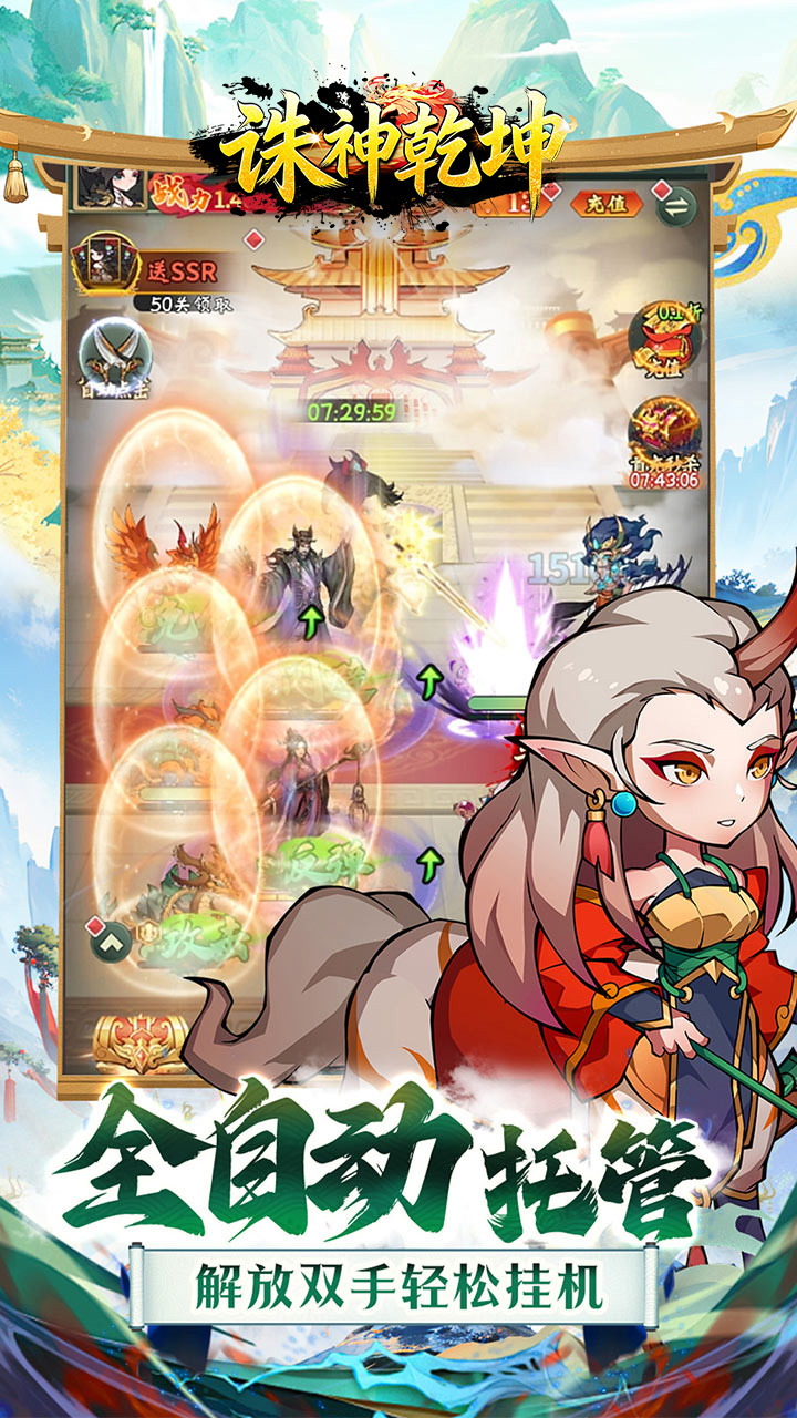 重温经典,共赴山海《诛神乾坤》是一款高度还原山海经的咸鱼放置卡牌游戏。游戏中可以收集到众多的奇珍异宝和山海神兽,玩法轻松休闲福利全面升级,还有超多免费充值燃情助力。革新融合多重PVE、PVP玩法和趣味养成路线,全自动托管让游戏变得更为简单,即刻开启全新山海旅程!