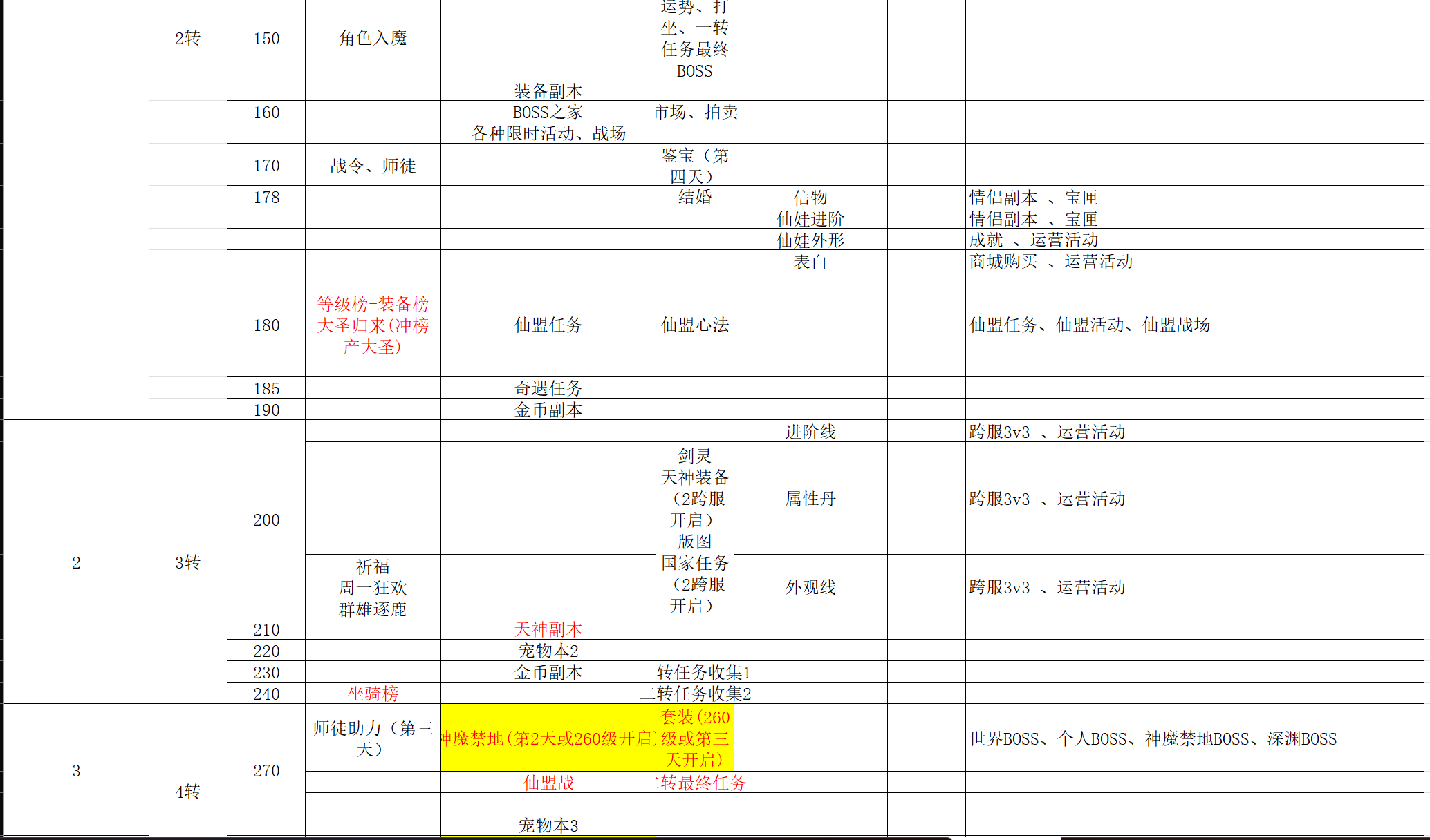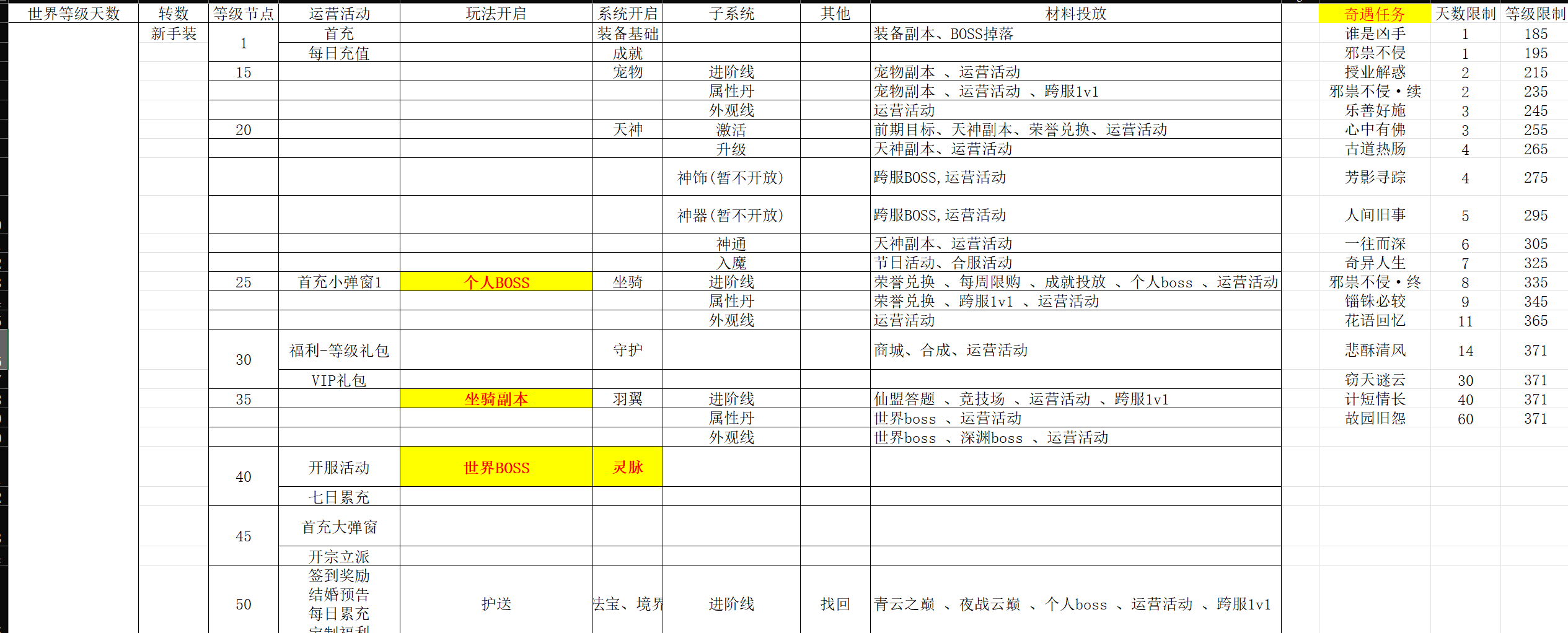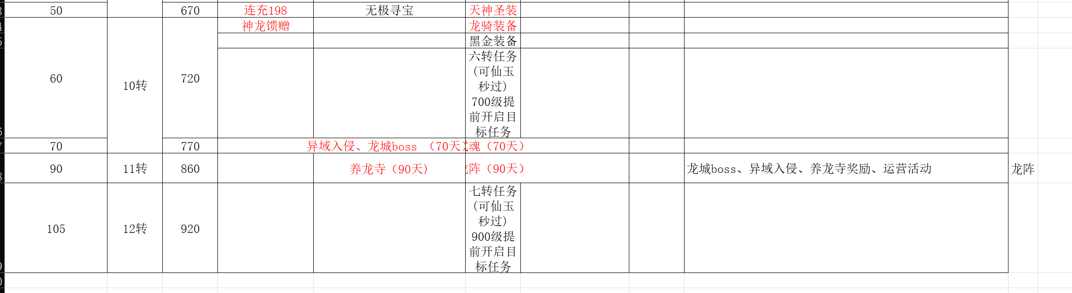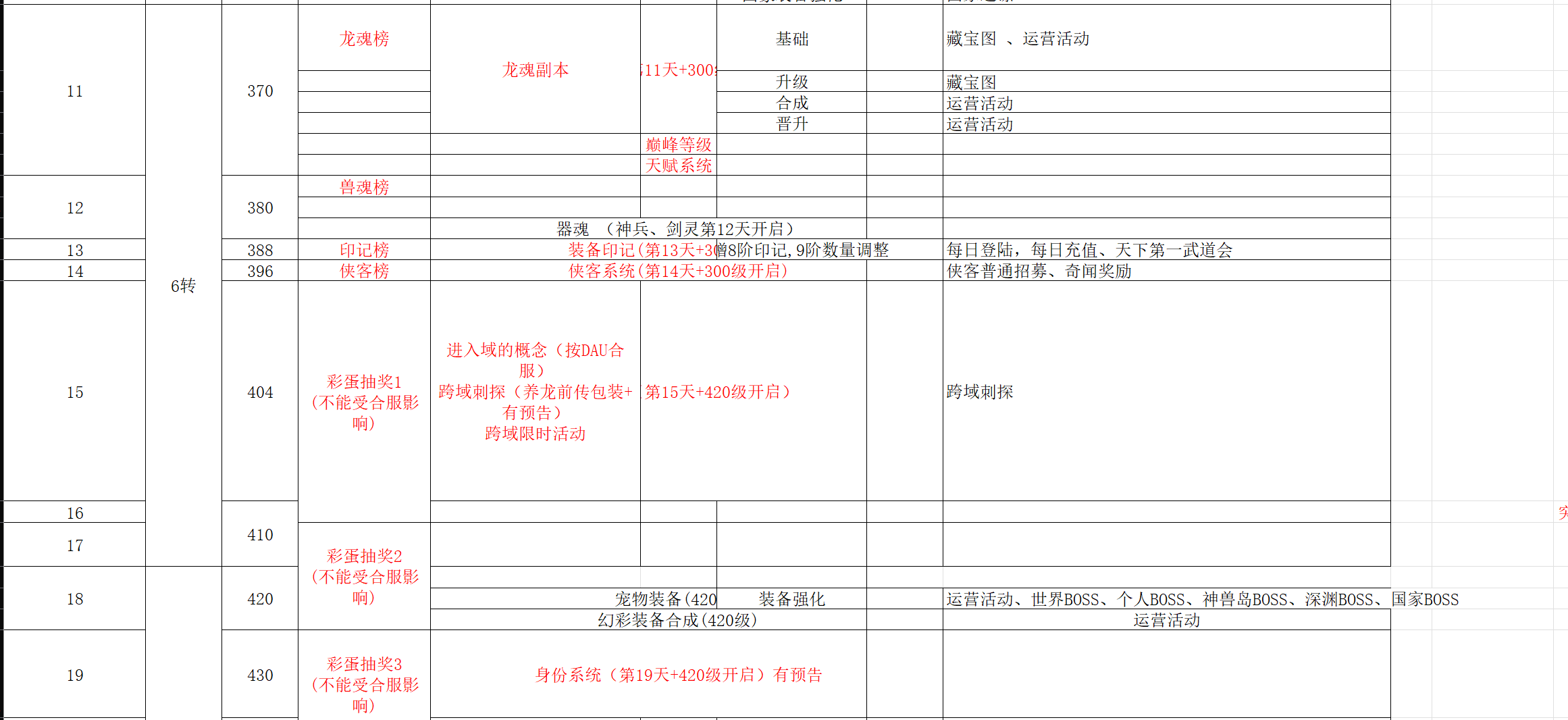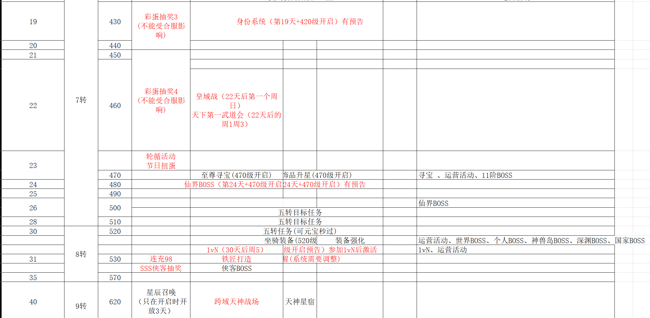 开服表