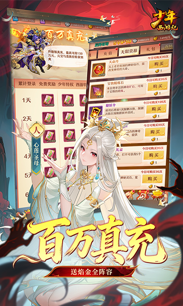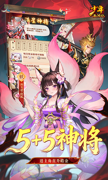 4亿玩家都在玩的《少年西游记(焰金免费版)》福利升级版已全新上线,玩就送焰金毕业阵容,每天领免费充值;全民冲级,狂送百万真充卡;返利商城0.1折豪礼钜惠 每日百抽无限爽抽神将;送5+5满星神将法宝 送主角直升皓金材料;GM指令 修改游戏数据 道具刷刷刷;全服共享充值进度,集全服之力于己身,百万累充奖励免费领;送自动推图,解放双手一键托管,内置加速器,8倍助力加速。单手轻松操作,爽快通关激斗,酷炫法宝合击,唯美清新画风,海量福利放送…你不可以错过的年度爆款!