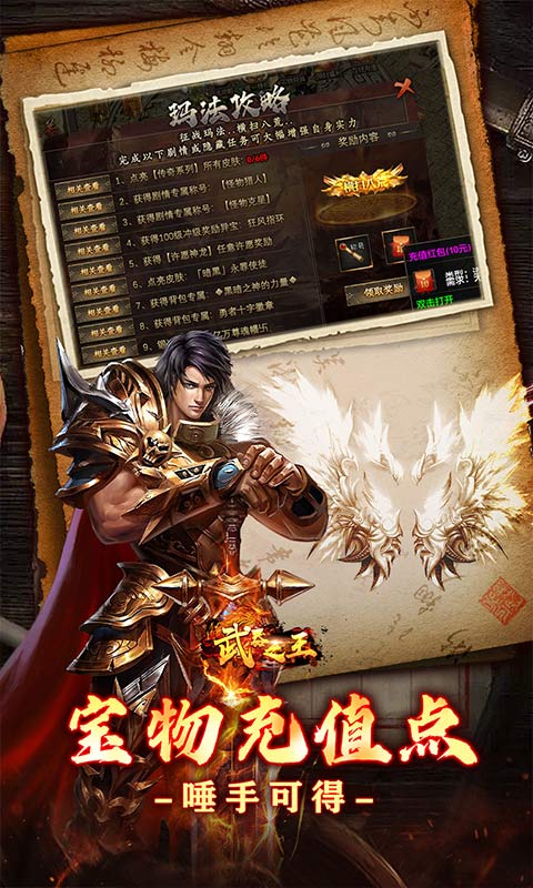 回归传奇本质,0充开局!消费支持打平台币白漂付款!解锁命格获得超级属性BUFF!助你走上巅峰之路!装备靠打,材料靠爆!品质大服,长久稳定!上百加专属装备,件件专属效果!玩法多样,功能创新,散人一样能逆袭!超多高爆BOSS免费挑战!神装,宝物,充值唾手可得!完成任务更可领真充和专属奖励!真诚邀您进服体验!楼上贵宾一位~!