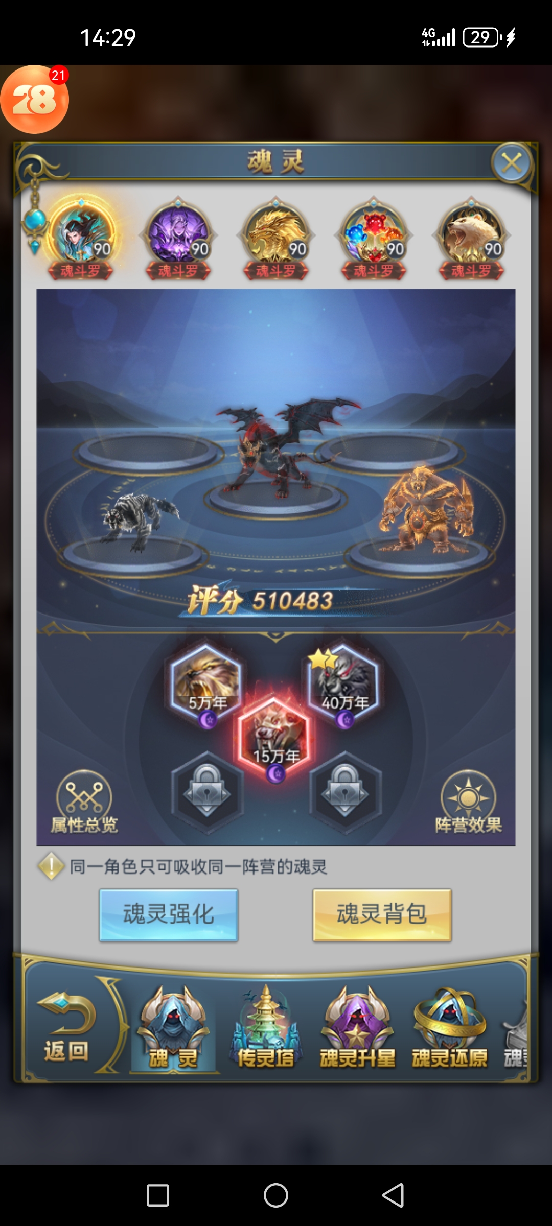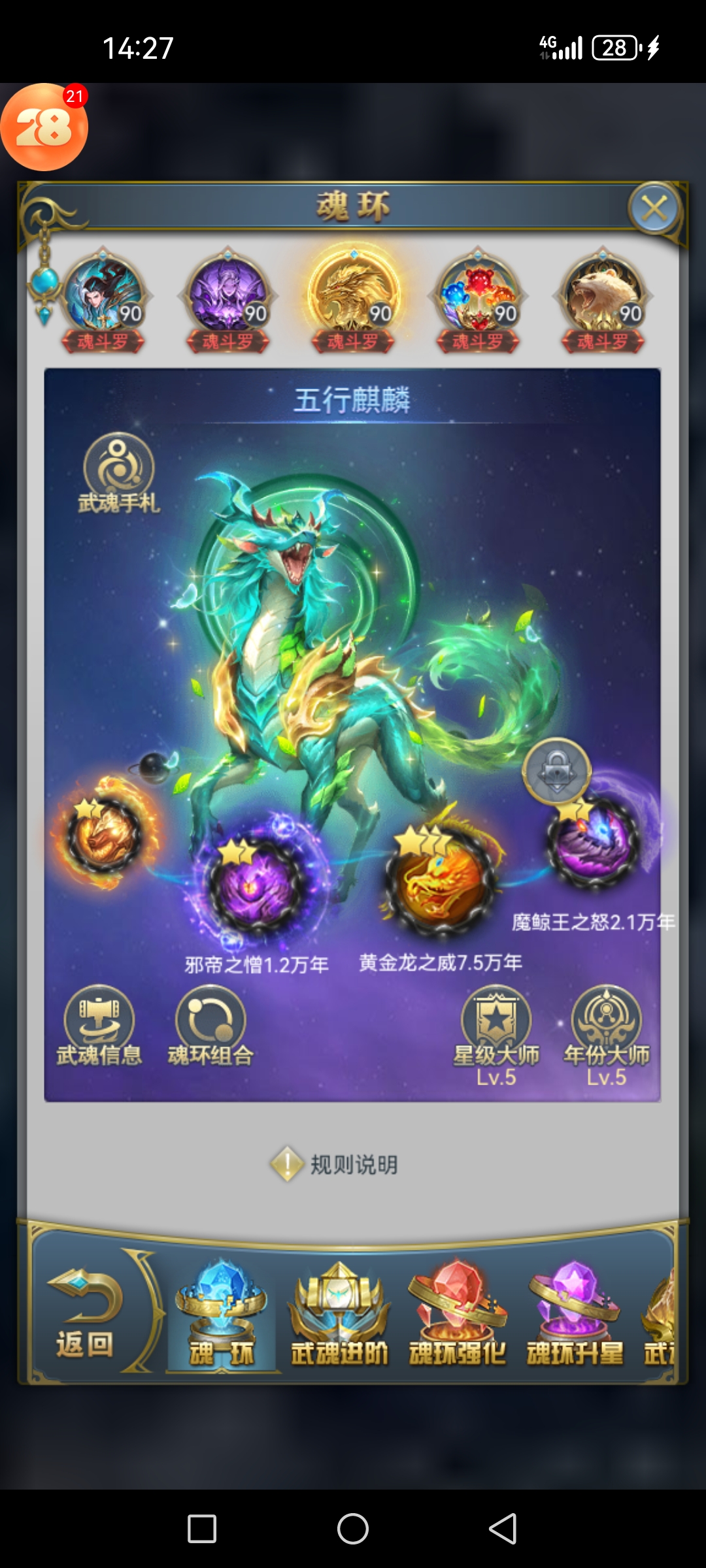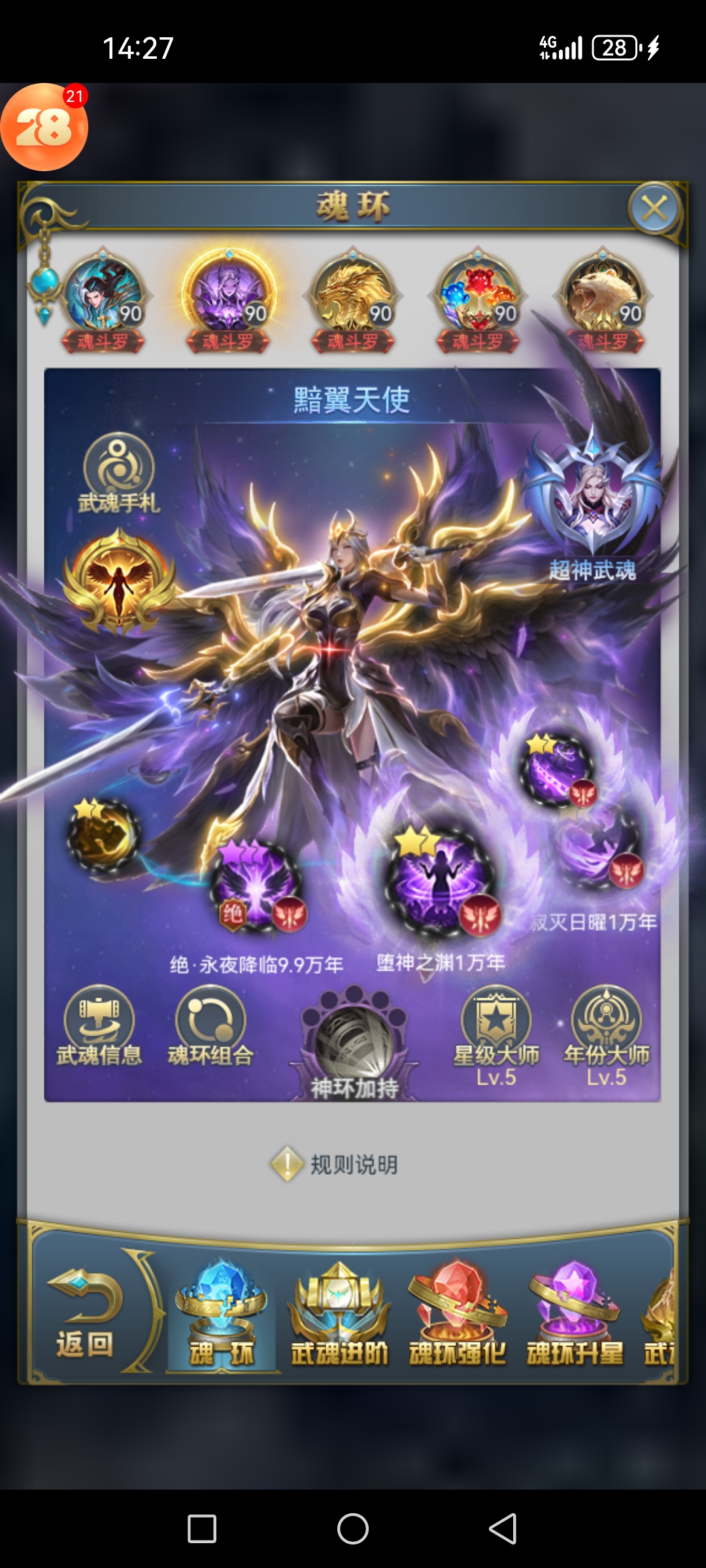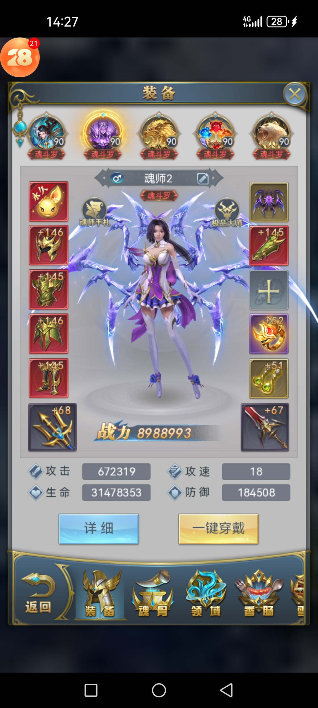 卖家描述: 都是魂斗罗90级,限定星级回款都是万年,三个经验八蛛矛和两个蓝银八蛛矛,武魂转化也是最强阵容