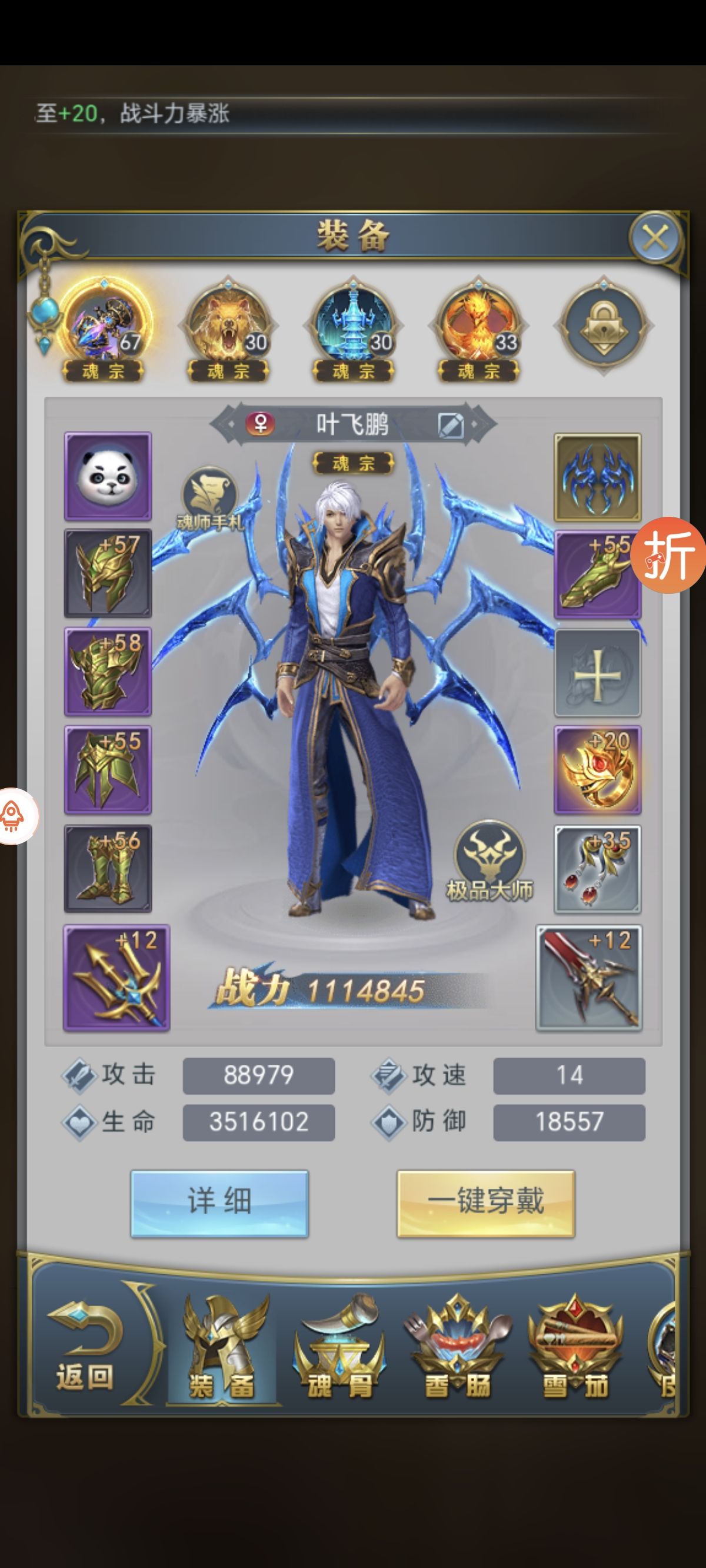 卖家描述: 目前是魂宗六七十级