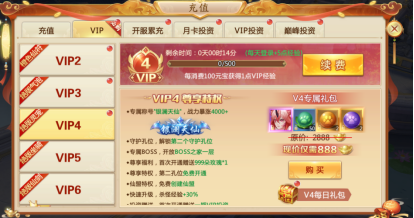 一个980元宝?还用想吗?VIP半年卡闭着眼睛买,成为仙界闪亮的V4玩家,让游戏体验更愉快,成长看得见: