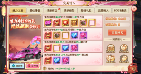 开服第二天会有一个魅力之王鲜花榜,可以给大佬送几朵小花,自己也能涨魅力值,双赢~