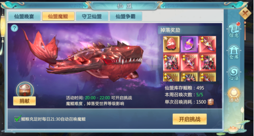 与此同时,仙盟魔鲲简直也是福利玩法,每次击杀魔鲲必得两个宝箱哦,50个碎片就可合成专属于你的鲲鲲哦~