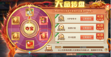 开服参加天命转盘最划算,免费获得红色经验符文永久11%经验加成,经验仙符还会不断成长哦~